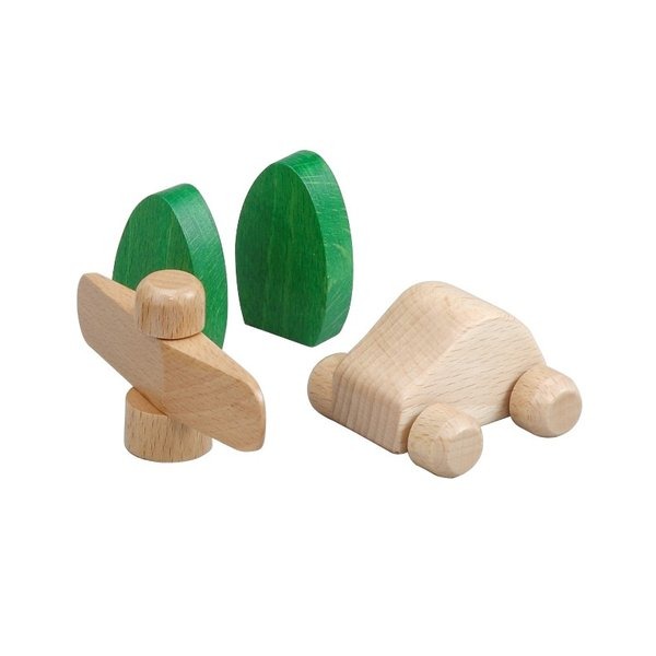4つのドミノパーツが1つになったお買い得なセットです。上手にバランスをとって積み上げたりしよう。集中力が養えます。風車の羽、車のタイヤは動きます。楽しく遊べるアイテムの1つです。材質:ブナ生産:台湾