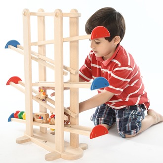 ピエロ・こま・車・ボール(4色)が上からカタカタ・コロコロ・グルグルと転がり落ちていきます。それぞれデザインが異なるので落ちるスピードも様々。お子様が喜ぶおもちゃの定番商品です。小さなお子様には、お母さんがパーツを転がしてあげ、それを追視(動く物を目で追うこと)することで脳へ良い刺激が与えられます。パーツが大きく、赤ちゃんも追視しやすい大きさです。